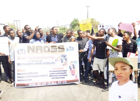 Church members, students and members of the family of late Miss Ifedolapo Oladepo staged a protest in Osogbo, Osun State, on Tuesday to register their anger over the alleged negligence of officials of the National Youth Service Corps orientation camp in Kano State, which led to the death of the 2016 Batch ‘B’ corps member.